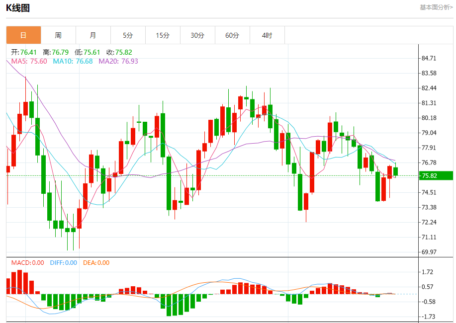 原油市场:截止北京时间21:08,美油下跌,现报75.82,跌幅0.90%。纽市盘前,原油价格显示积极交易远离75.65水平,并可能在即将到来的交易中测试77.40阻力。