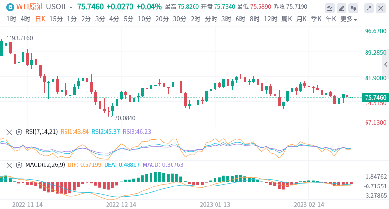 周二亚盘,原油交投于75.74附近。油价周一下跌约1%,强劲的美国经济数据让投资者准备迎接美联储为对抗通胀而继续加息,这可能会削弱经济增长和石油需求。在俄罗斯停止通过一条关键管道向波兰出口石油后,对供应的担忧限制了油价跌幅。周一,俄罗斯石油管道运输公司(Transneft)表示,开始从哈萨克斯坦通过德鲁日巴管道向德国泵送石油,同时停止向波兰输送石油。