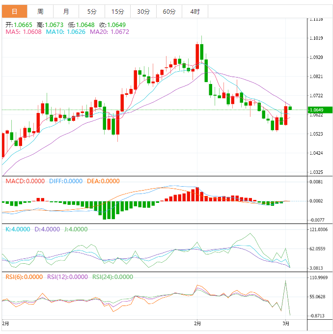 若突破1.0650目标水平,欧元将可能进一步上涨看向1.07。关键阻力位在1.08水平。