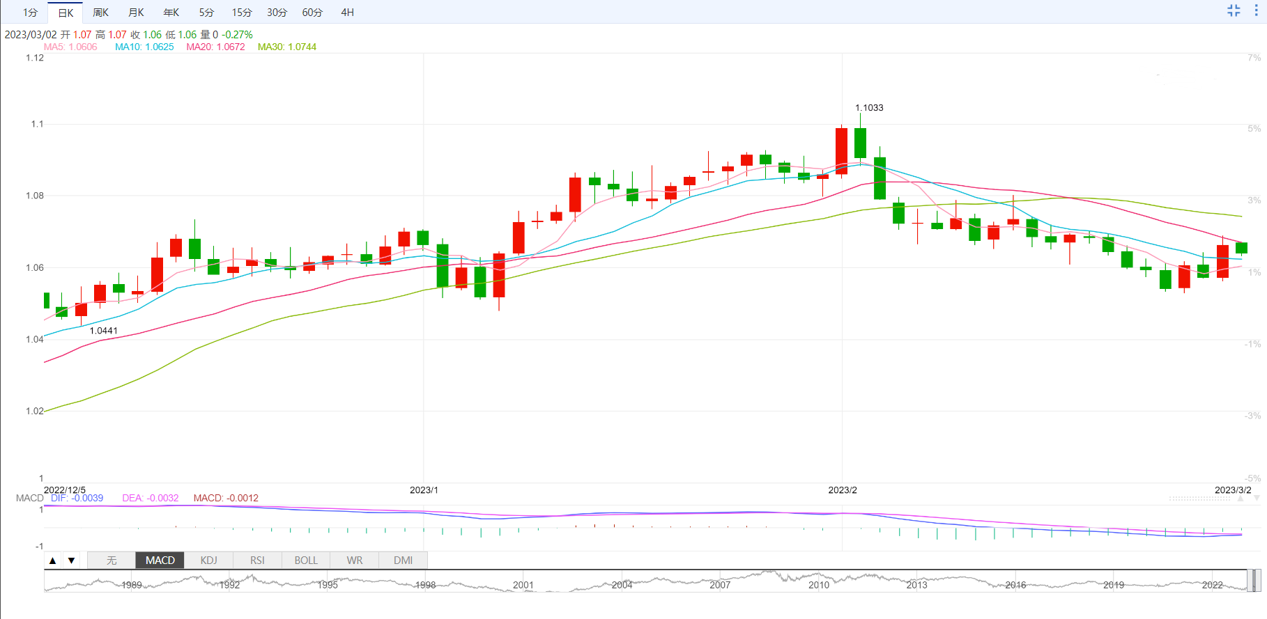 欧元/美元处于大幅下行的边缘,欧元/美元跌破1.0660关键支撑位下方维持疲弱。欧元/美元下跌倾向受到美国国债收益率飙升的支持,这表明市场风险偏好明显回落。在欧元区方面,德国消费者价格调和指数回升表明通胀异常顽固。因此,不能排除欧洲央行(ECB)进一步加息的可能性。高盛(Goldman Sachs)分析师调整其对欧洲央行加息的指引。欧洲央行将于5月将加息幅度自25个基点上调至50个基点。欧洲央行行长拉加德(Christine Lagarde)已经宣布,3月将加息50个基点。高盛这家投行公司预计,6月欧洲央行利率将达到峰值3.75%,而此前的预测是3.50%。