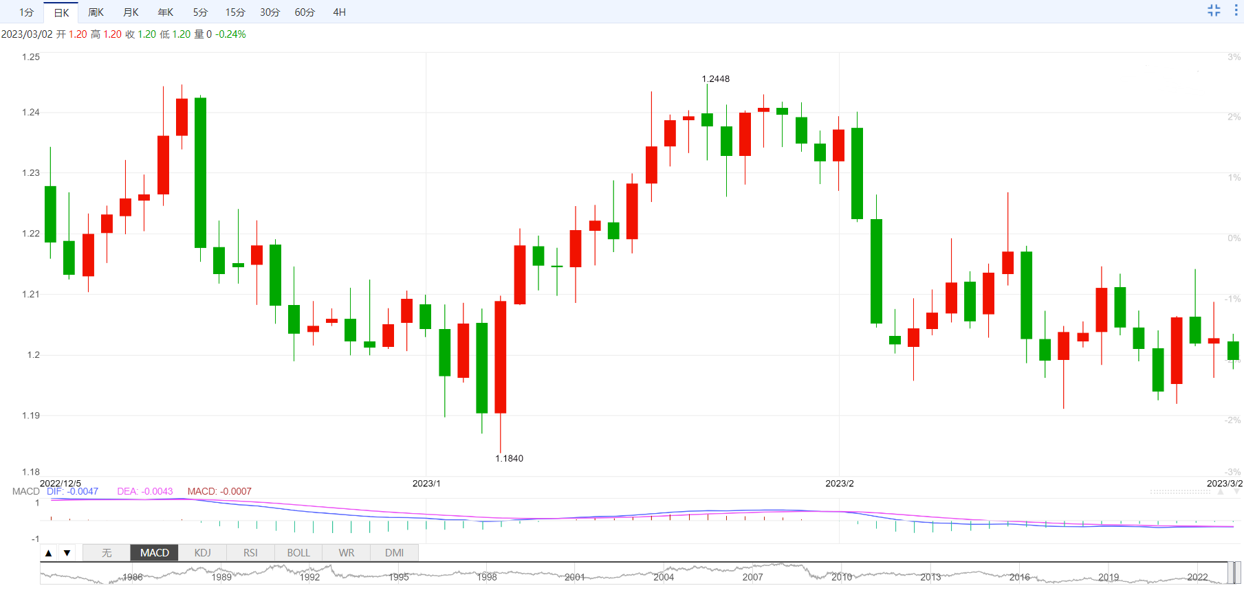 美元指数:截止发稿,美元指数上涨,现报104.66,涨幅0.26%。欧市盘前,美元指数从一周低点反弹至104.60,盘中上涨0.17%,原因是美元多头追踪强劲的美国国债收益率,以及美联储鹰派谈判带来的负面情绪。美国10年期国债收益率升至2022年11月初以来的最高水平,突破4.0%关口,而两年期国债收益率则反弹至2007年6月以来的最高水平,最晚突破4.91%关口。美国国债收益率的飙升反映了市场的担忧,这反过来又打击了华尔街的多头,并在最近令标准普尔500指数期货承压。