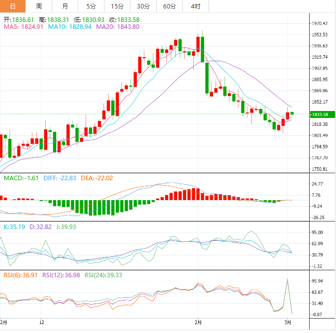 技术面:200和50简单移动均线(sma)在1,827美元附近的收敛,似乎是挑战金价进一步下行的关键支撑。即使价格跌破1827美元的移动平均线汇合线,09年2月的之前阻力线,接近1817美元,也可以作为黄金买家的最后防线。