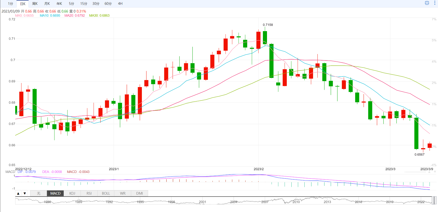 澳元/美元跌破0.6600,到目前为止对中国通胀的反响不大。另外,市场关注的是美联储加息的前景,这对市场风险偏好造成了压力。澳元/美元已构筑十字星K线形态,表明澳元/美元方向不明。通常情况下,十字星K线形态是表示继一个既定趋势之后价格出现反转。然而,这需要更多的信号确认反转。此外,如果澳元/美元忽略十字星信号将被视为澳元/美元将延续当前趋势。
