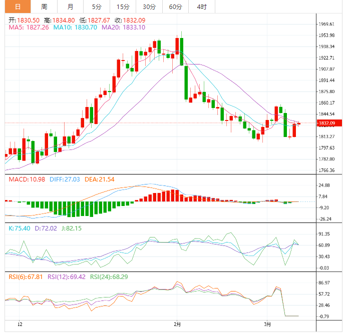 技术面:RSI跌入60附近,但尚未脱离看涨区间。若跌破1.1900的整数水平支撑位,美元多头将拖累该货币对进一步跌向3月8日高点1.1860和11月17日低点1.1763。