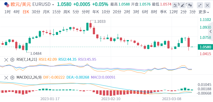 美元指数:截止发稿,美元指数交投于104.580附近。美元周三受避险买盘推动上涨,此前瑞士信贷在披露其财务报告中的“缺陷”后股价暴跌,投资者再次担心一场全面的全球银行危机正在酝酿之中。技术面上,未能突破104.90附近的100-DMA,导致美元指数再次尝试突破103.45附近的50-DMA支撑。