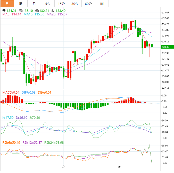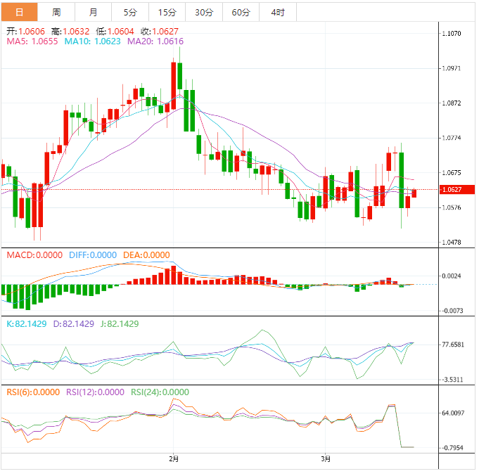 周五盘中,美元指数窄幅震荡,目前交投于104.28附近。隔夜美元指数下跌约0.29%,欧元兑美元上涨约0.36%,周四下跌,因在瑞士央行向瑞士信贷抛出了540亿美元的救命资助后,欧洲央行在最近几天市场混乱的情况下仍按计划加息50个基点。