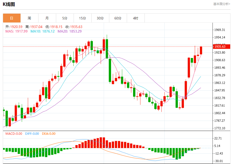 现货黄金:截止北京时间20:00,现货黄金上涨,现报1935.48,涨幅0.77%。纽市盘前,黄金价格成功突破1928.60水平,并试图在其上方建立支撑基础,强化了日内和短期继续看涨趋势的预期,通往下一个目标1960.00的道路是开放的。