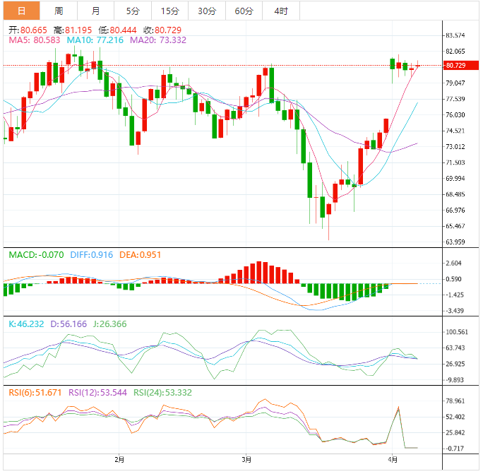 技术面:虽然近期波动不大,但WTI原油依然走强突破100日均线76.80美元附近支撑位。不过自2022年12月以来的下降阻力线位于81.70美元附近,似乎为多头强劲障碍。
