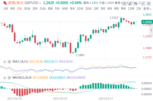 美元指数:截止发稿,美元指数交投于102.130附近。美元周二下跌,因为投资者在等待通胀数据,以进一步了解价格压力是否正在消退,以及这对美联储进一步加息意味着什么。美联储被认为有可能在5月2-3日的会议上再加息25个基点,然后在6月暂停加息。尽管美联储官员强调有必要保持高利率以降低通胀,但市场也在为美联储在年底前因预期的经济衰退而降息定价。技术面上,美元指数从13天的阻力线和21天的指数移动平均线(EMA)的交汇点反转,截至发稿时约为102.65,使美元空头保持希望。