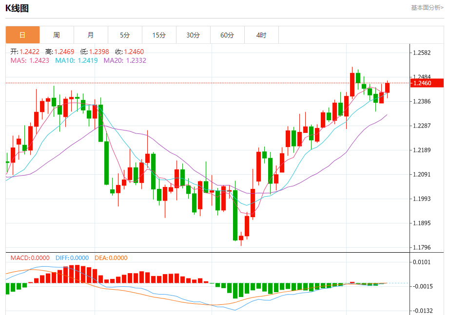 英镑/美元:截止北京时间20:45,英镑/美元上涨,现报1.2460,涨幅0.30%。纽市盘前,自上午以来,GBPUSD对在紧密轨道内波动,显示出轻微的负面企图,以保持我们今天的看跌概览,这取决于1.2460以下的价格稳定性,提醒您我们正在等待实现从1.2355开始并延伸到1.2250的负面目标,这代表从1.1800区域开始的上涨的38.2%的斐波纳契。