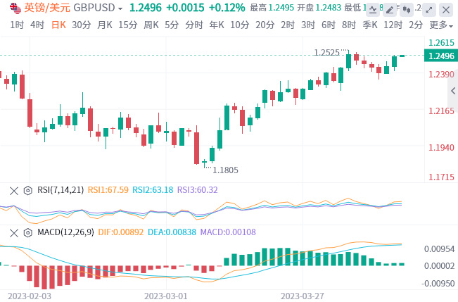 英镑:截止发稿,英镑/美元徘徊于1.2496附近,昨日英镑/美元收高,收报1.2484,涨幅0.49%。英国央行的贝利排除了对银行业危机的担忧,同时补充道,“不应该因为危机而‘瞄准’利率决定。”美国总统拜登对北爱尔兰的访问推动了脱欧协议,但没有发出任何美英贸易协定的重大信号。路透社称:“美国总统乔·拜登周三表示,英国和欧盟之间达成的一项简化脱欧后贸易规则的协议将导致“数十家”美国大公司在北爱尔兰进行大量投资。”。技术面上,汇价上行的初步阻力位于1.2519,进一步阻力位于1.2555,关键阻力位于1.2616;汇价下行的初步支撑位于1.2422,进一步支撑位于1.2361,更关键支撑位于1.2325。