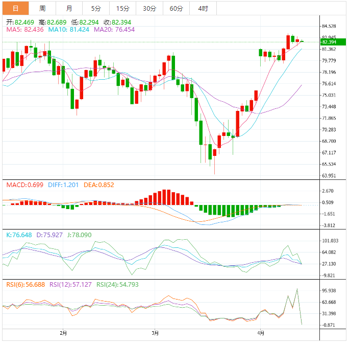 阻力位:83.18 83.76 84.52