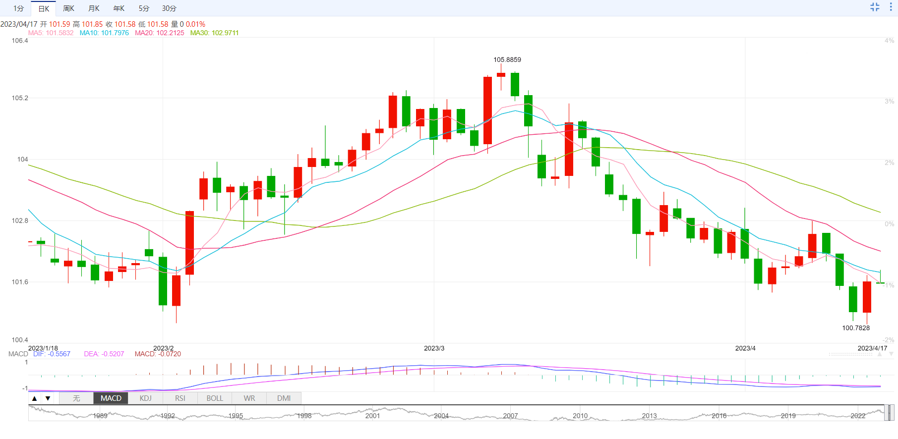 支撑位:101.27 101 100.56