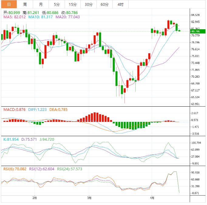 支撑位:80.06 79.18 77.9
