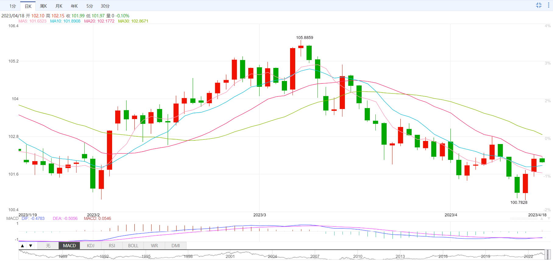 支撑位:100.99 100.41 100.04
