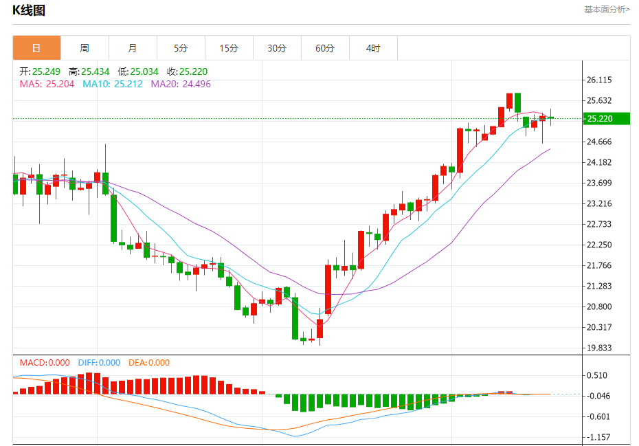 现货白银:截止北京时间20:22,现货白银下跌,现报25.230,跌幅0.07%。纽市盘前,白银价格从早上开始就显示出紧张的交易,因此,今天的预期看跌趋势没有改变,这取决于价格在25.50以下的稳定性,由随机指标now提供的负重叠信号驱动,提醒您我们的目标从24.60开始,在突破前一水平后延伸至23.70。