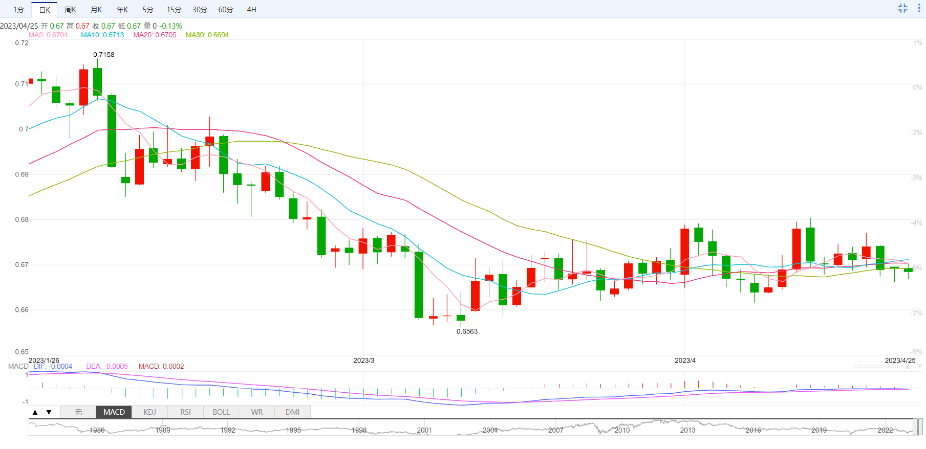 澳元/美元刷新日线低位处在0.6680附近。在这期间,澳元/美元中断前日自两週低点整理反弹的趋势。由于澳大利亚和新西兰正值澳新军团假期,市场情绪低迷,澳元/美元延续最新下跌趋势。然而,美国谘商会4月份消费者信心指数期值为104.1,前值为104.2,将对澳元/美元波动方向很重要。