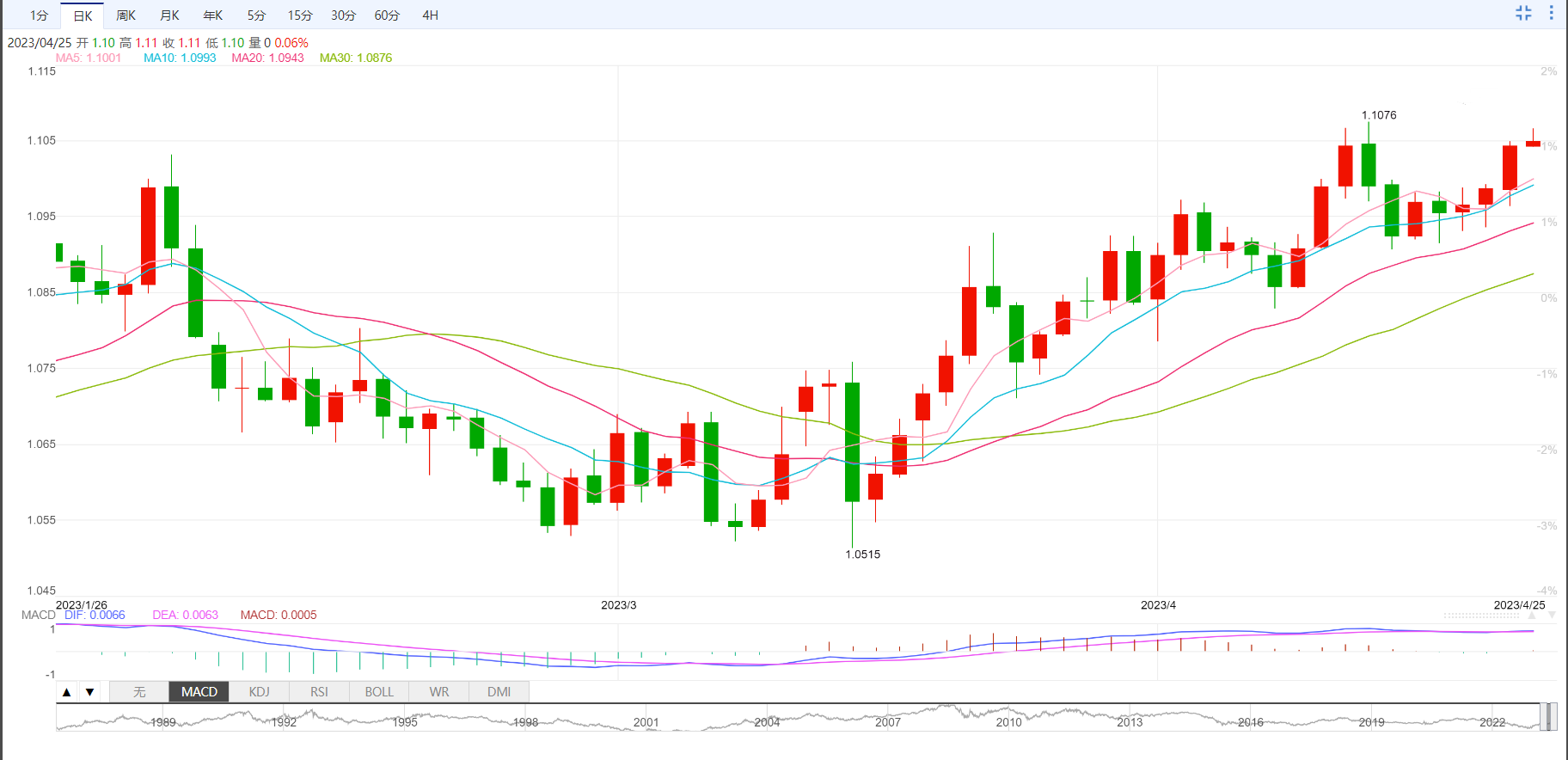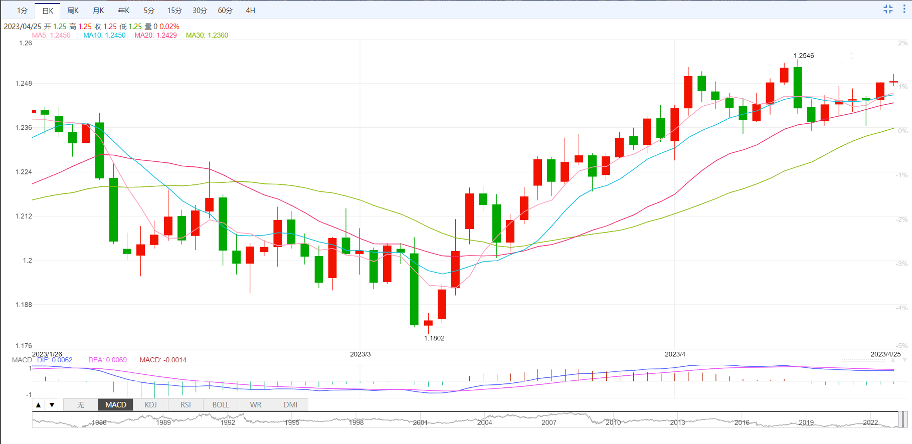 英镑/美元收复了1.2500的心理阻力。在美元指数疲弱,英镑/美元大幅上涨。美元指数刷新周线低位101.20,有望展开进一步下跌,理由是市场预计美联储在5月加息25个基点后将结束量化紧缩计划。本週,週四公佈国内生产总值(GDP)初值之前,美元指数预计仍将有所波动。第一季度国内生产总值年率预计将收缩至2.0%,而前值为2.6%。如果国内生产总值下降,将加大市场对美国经济放缓的担忧。这也可能迫使美联储在利率指导上採取稳定的立场。