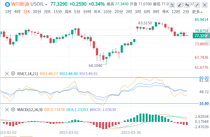 周三亚盘,原油交投于77.329附近。油价在此前两个交易日连涨后周二下挫逾2%,因对经济放缓的担忧加深且美元走强,盖过了对中国需求增加和美国原油库存下降的希望。美国4月份消费者信心指数降至九个月低点,加剧了对经济衰退的担忧,此前一天,地区贷款机构第一共和银行报告存款外逃超过1000亿美元,激起了人们对潜在银行危机的担忧。美国联邦储备理事会、英国央行和欧洲央行预计都将在即将召开的会议上加息。美联储在5月2-3日召开会议。石油交易商还担心,全球疲软的炼油利润可能迫使炼油商减少石油购买。