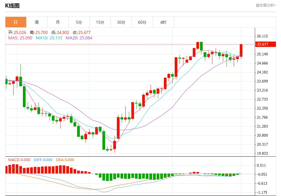 现货白银:截止北京时间20:29,现货白银上涨,现报25.672,涨幅2.58%。纽市盘前,白银价格在横盘轨道内波动,目前在EMA50附近结算,注意到随机指标明显失去其积极势头,现在开始负重叠,等待激励价格恢复负面交易以攻击24.60并打破它,以开辟向23.70反弹的道路,作为下一个负面目标。