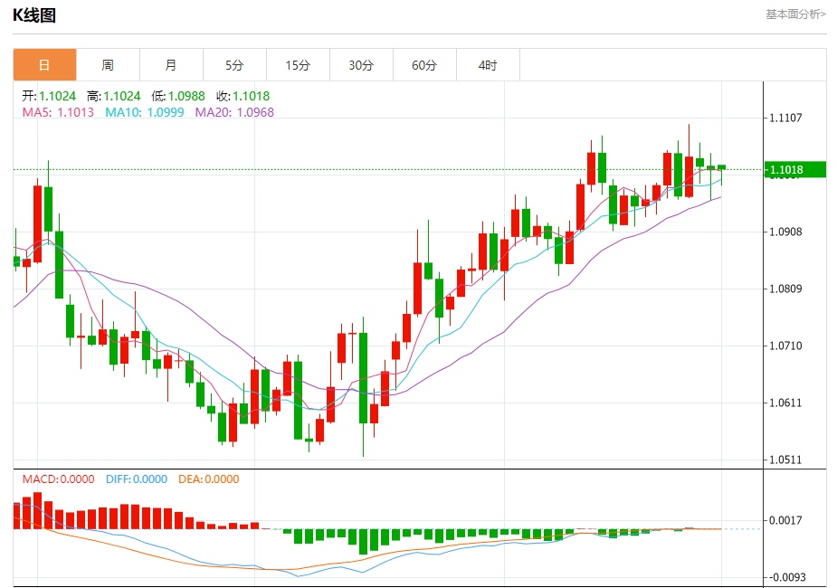 欧元/美元:截止北京时间20:29,欧元/美元上涨,现报1.1018,涨幅0.01%。纽市盘前,欧元兑美元显示出平静的负面交易,跌破EMA50,加强了今天剩余时间继续看跌趋势的预期,提醒你我们等待的目标位于1.0945。