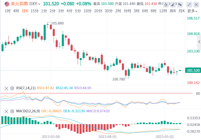 美元指数:截止发稿,美元指数交投于101.520附近。美元兑一篮子货币周一小幅走高,摆脱了早些时候的疲软,因为交易员将注意力从一项毫无意外的贷款状况调查结果转移到其他经济数据上,这些数据可能为美联储的加息路径提供新的线索。技术面上,未能在三周前的上升支撑线(目前在101.20左右)下方提供每日收盘,这促使美元指数下跌。