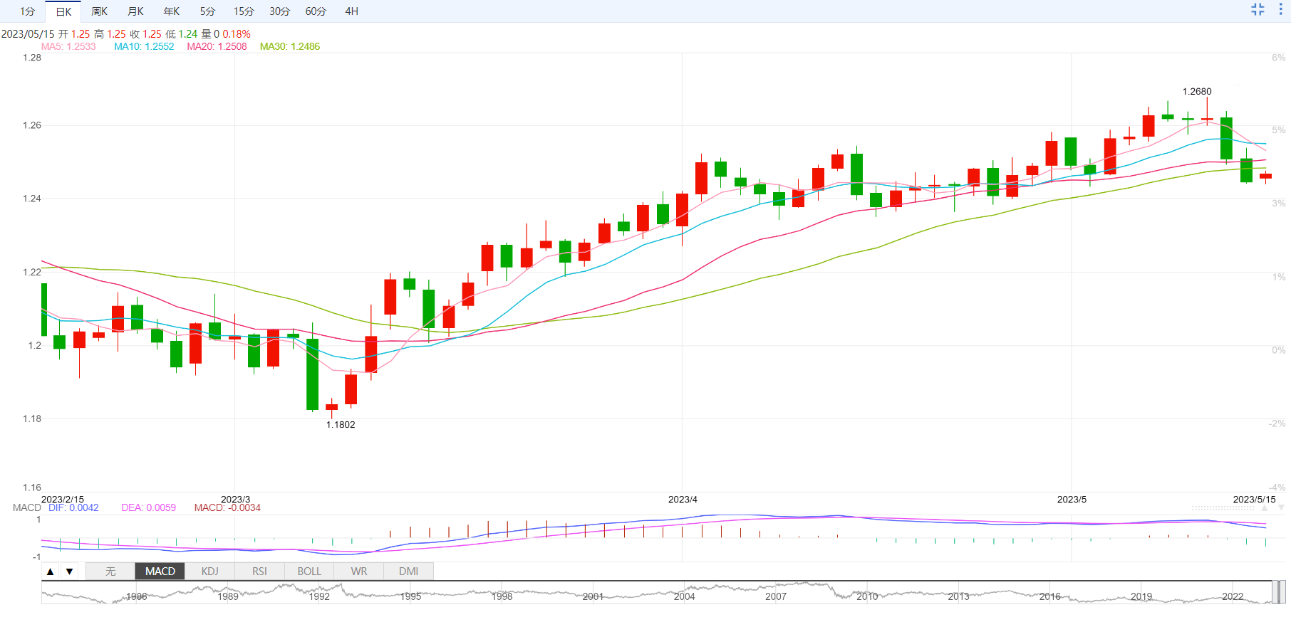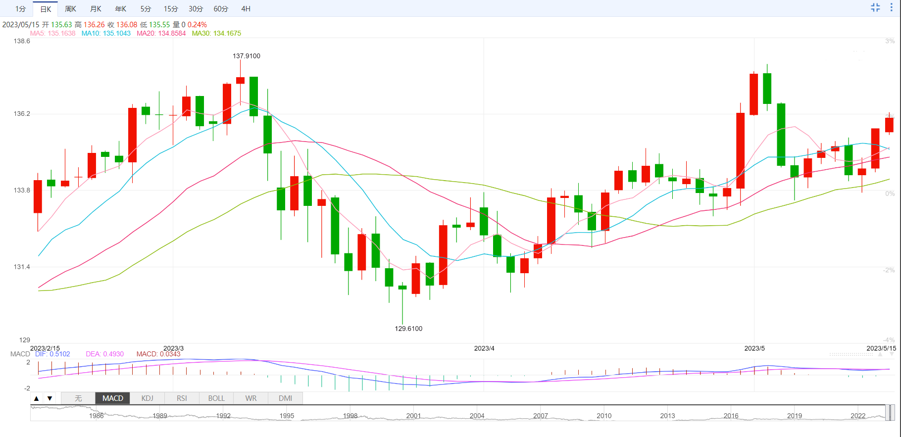 美元指数维持震荡,此前刷新五周高点102.75,因为美国总统乔·拜登将在周二与共和党领导人会面,就提高美国财政部债务上限进行进一步谈判。然而,如果週二的会议没有实际结果,将大大加深对债务违约的担忧。展望未来,美国零售销售数据公佈后,美元指数将出现波动。零售销售月率预期为0.7%,前值-0.6%。家庭零售需求的恢复可能会削弱美联储暂停加息的前景。