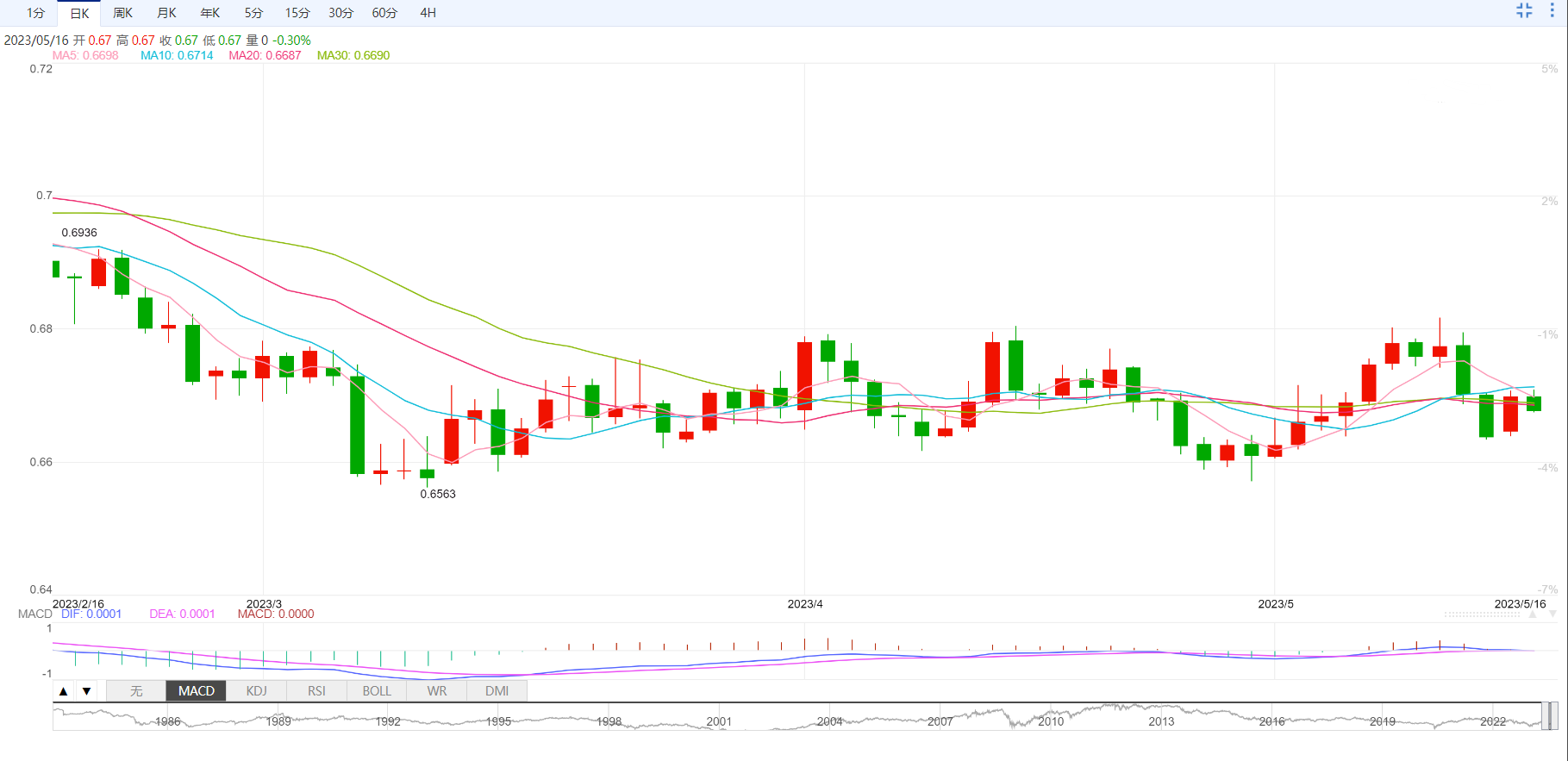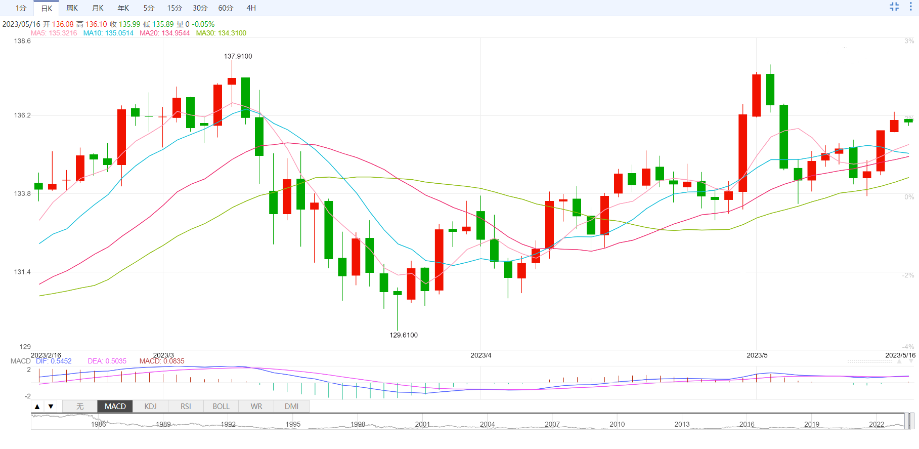 美元指数经历一些列下行震盪后在102.40下方的下跌动能减弱。在美国4月零售销售数据公佈前,预计美元指数将出现重大行情。根据预估,4月零售销售料增长0.7%,前值下降0.6%。在美国债务上限谈判之前,来自中国和美国的关键统计数据可能会让美元指数交易员感到高兴。如果美国政策制定者给市场带来一个积极的惊喜,就不能排除目睹美元暴跌的可能性。值得注意的是,低迷的美国零售销售数据也可能令美元承压。