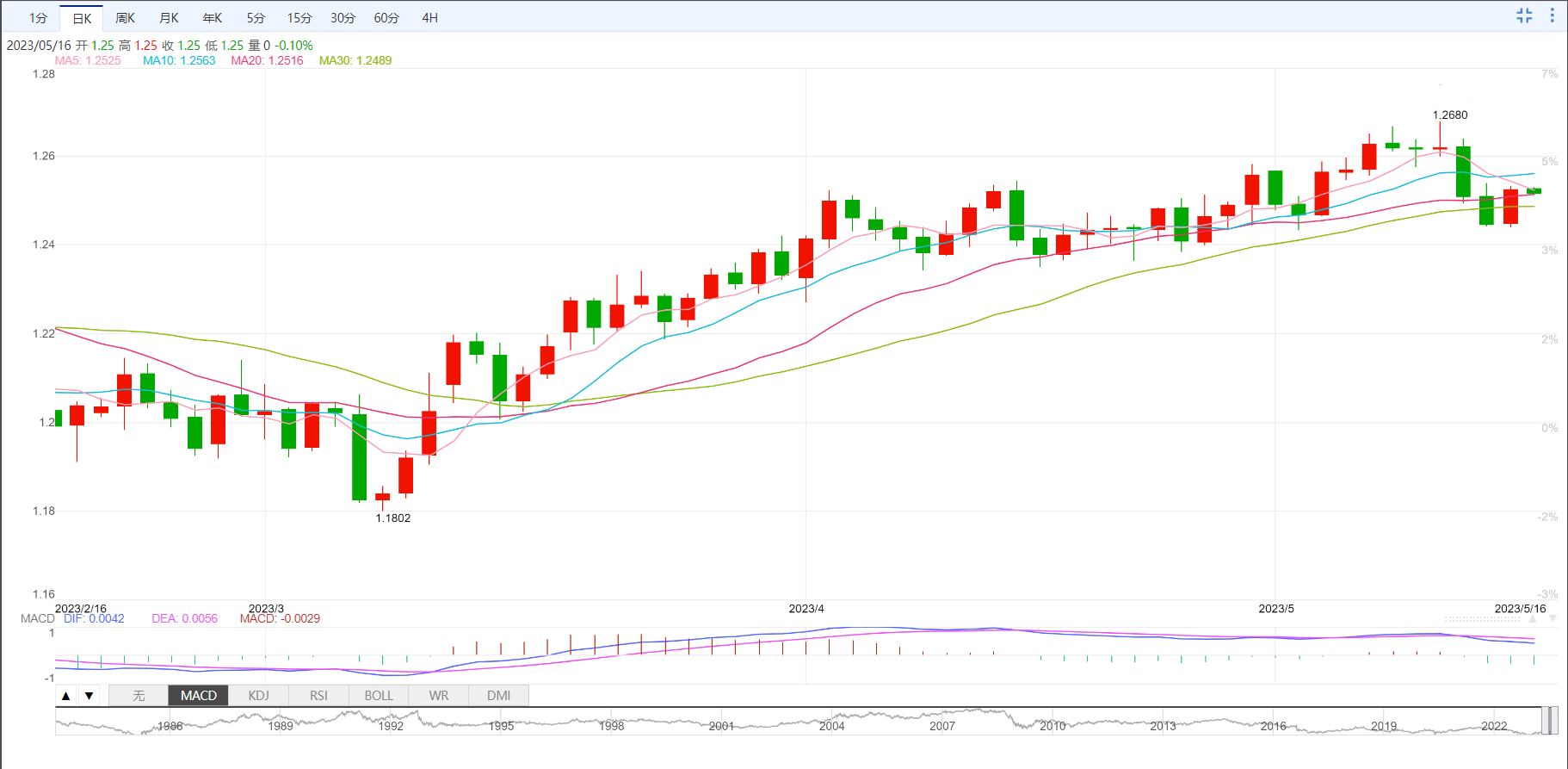 英镑/美元于周二在1.2550的短期支撑位上方震盪。在英国就业数据公佈之前,英镑出现波动性收缩迹象。标普500指数期货在亚市下跌,因为投资者在美国债务上限谈判前保持谨慎。由于美国国会共和党人与美国总统拜登之间的债务上限谈判结果将充满惊喜,整体市场情绪似乎有利于风险规避主题。英镑方面,劳动力短缺和历史性的高食品通胀是英国通胀率达到两位数的主要催化剂。英国就业(4月)数据的发布将表明整个劳动力市场的实力。