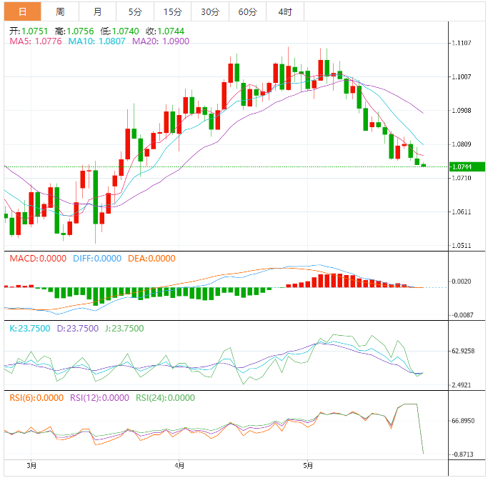 欧元:欧元/美元跌至3月底以来的新低后维持疲弱,空头测试1.0750大关。这样一来,欧元/美元录得三连跌,同时跌破週线低点,以及上週录得的两个月低位。应该注意的是,欧元/美元自100日均线反转,且MACD信号看跌加大欧元/美元下跌倾向。然而,相对强度指标(14)几乎超卖,因此表明在进一步下跌前,欧元/美元下行空间有限。