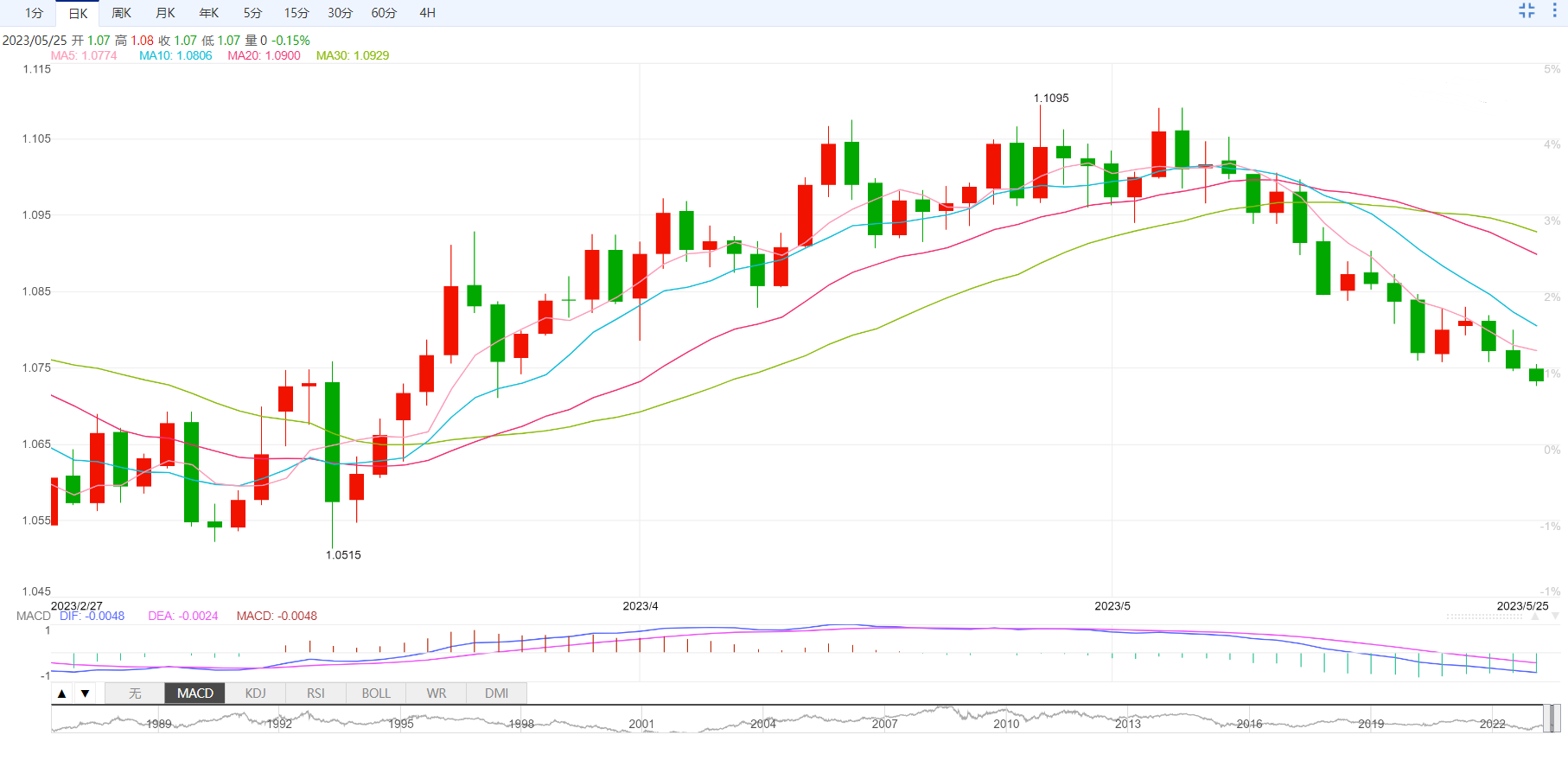 欧元/美元刷新四周低位1.0740附近。市场情绪保持谨慎,欧元/美元面临巨大的抛售压力。市场情绪变得消极,投资者担心,如果美国债务上限问题一直拖延不决,美国经济将被迫债务违约。美联储会议纪要呈现鸽派,标准普尔500指数期货维持亚市早盘出现的大幅涨幅。大多数美联储(FED)政策制定者预计,美国地区银行信贷条件紧张,政策紧缩紧箍咒将暂时停止。然而,在白宫和共和党领导人没有就债务协议达成两党共识之前,整体市场情绪仍将维持避险。