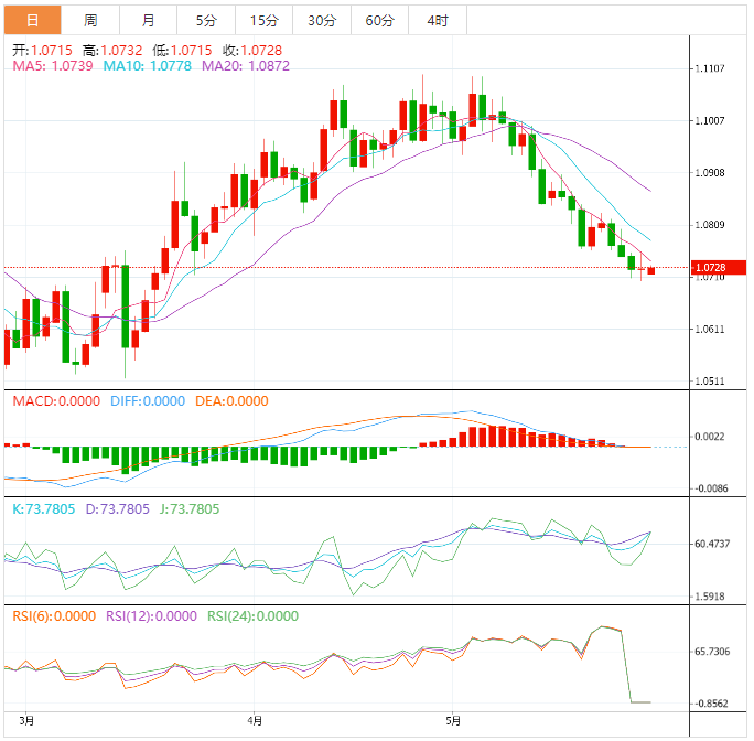 欧元:欧元/美元盘整在1.0700整数关上方。欧元/美元预计将继续保持行动,因为在民主党人对预算支出举措作出妥协后,两年内上调31.4万亿美元美国债务上限的提案已获批。欧元/美元已跌至3月15日低点1.0516到4月26日高点1.1095升势的61.8%斐波那契回撤位1.0738。20期指数移动均线(EMA)在1.0740,对欧元多头来说是一个强阻力。欧元/美元交投于下降通道,每次回撤都被市场参与者视为做空机会。