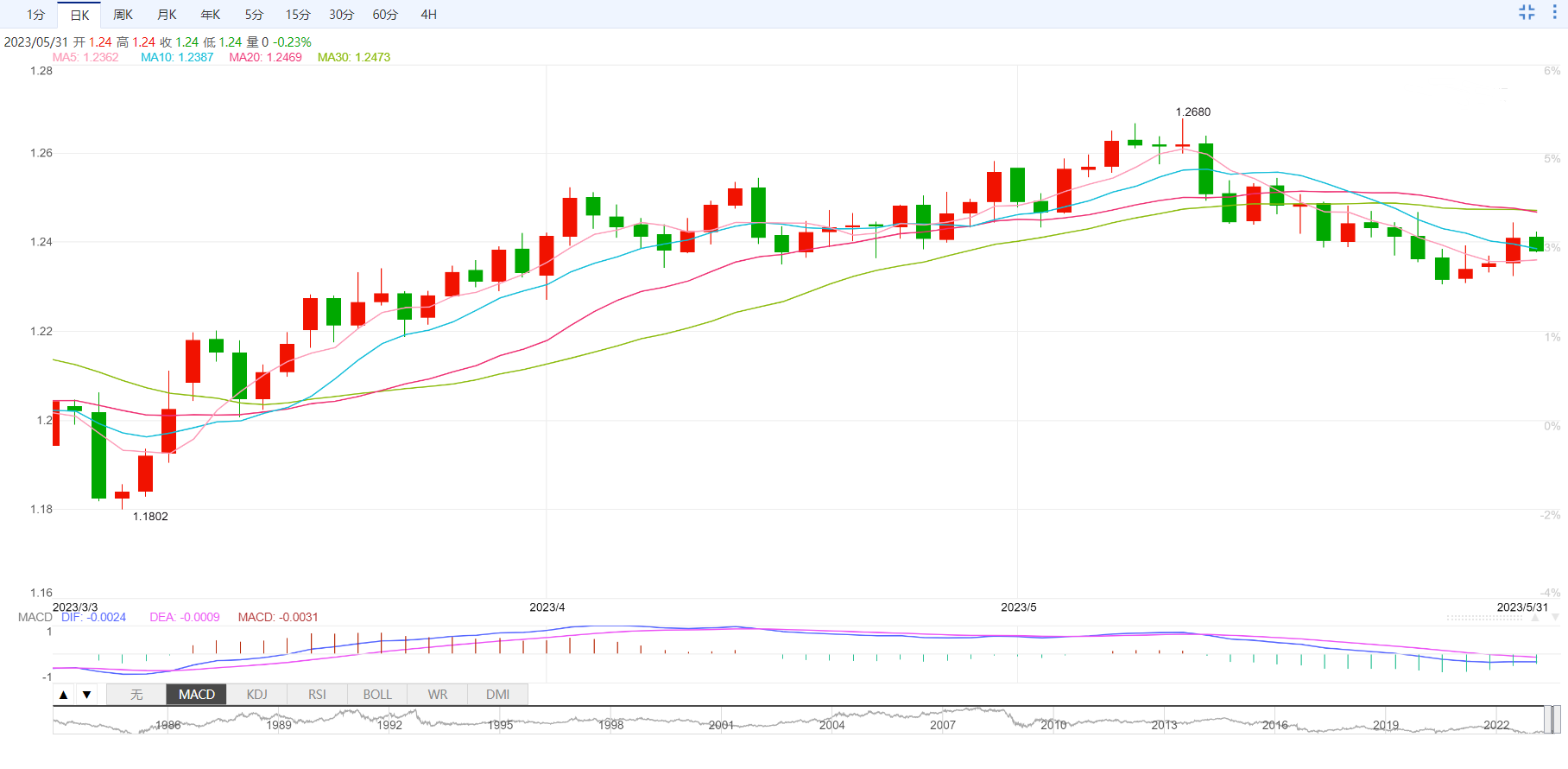 澳元兑美元周三冲高回落,盘中一度涨至0.6537附近,因澳洲4月CPI数据强于市场预期,但汇价很快回落,一度创下本周新低至0.6491,跌幅约0.38%,因中国5月PMI数据弱于市场预期。