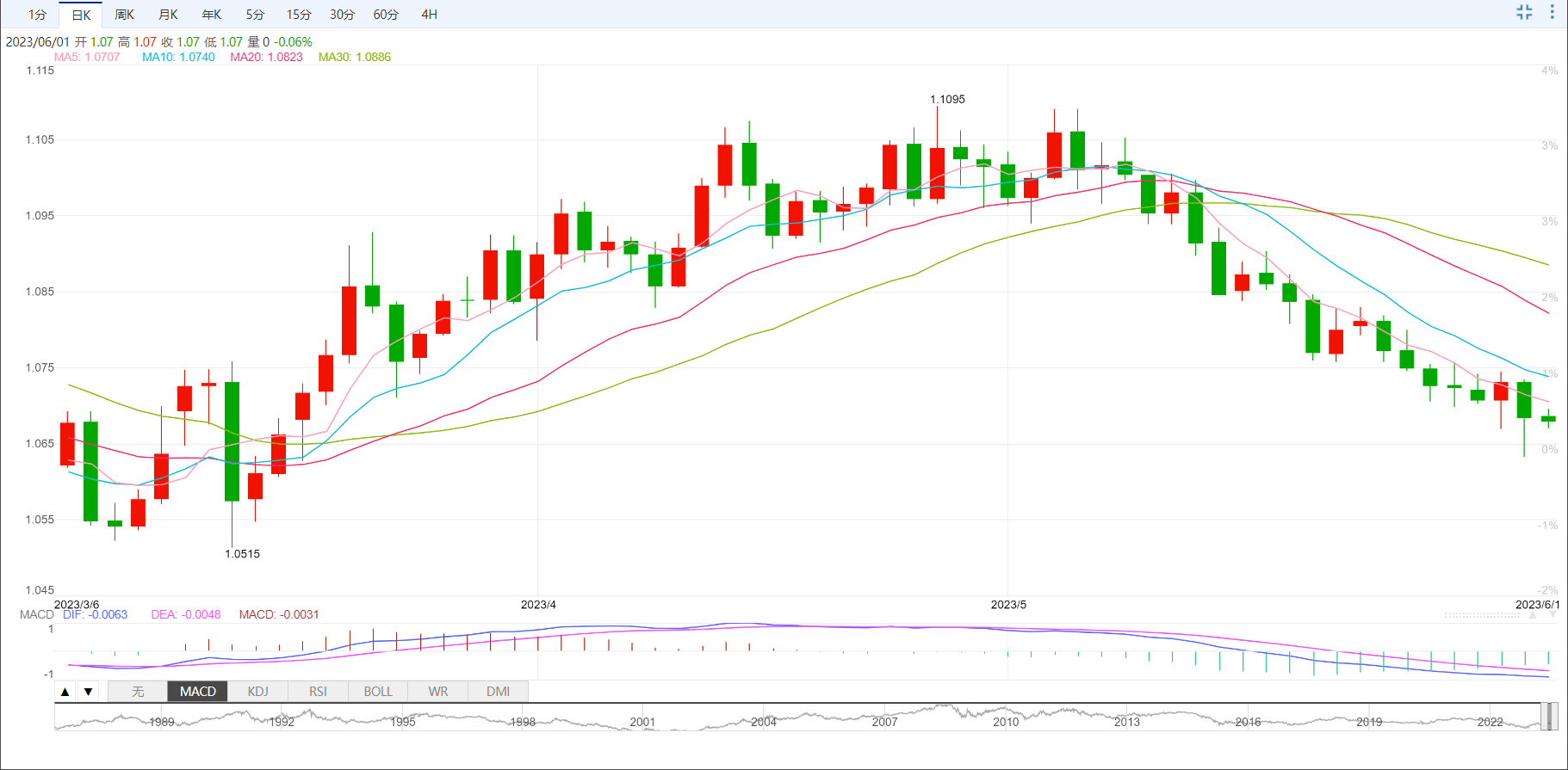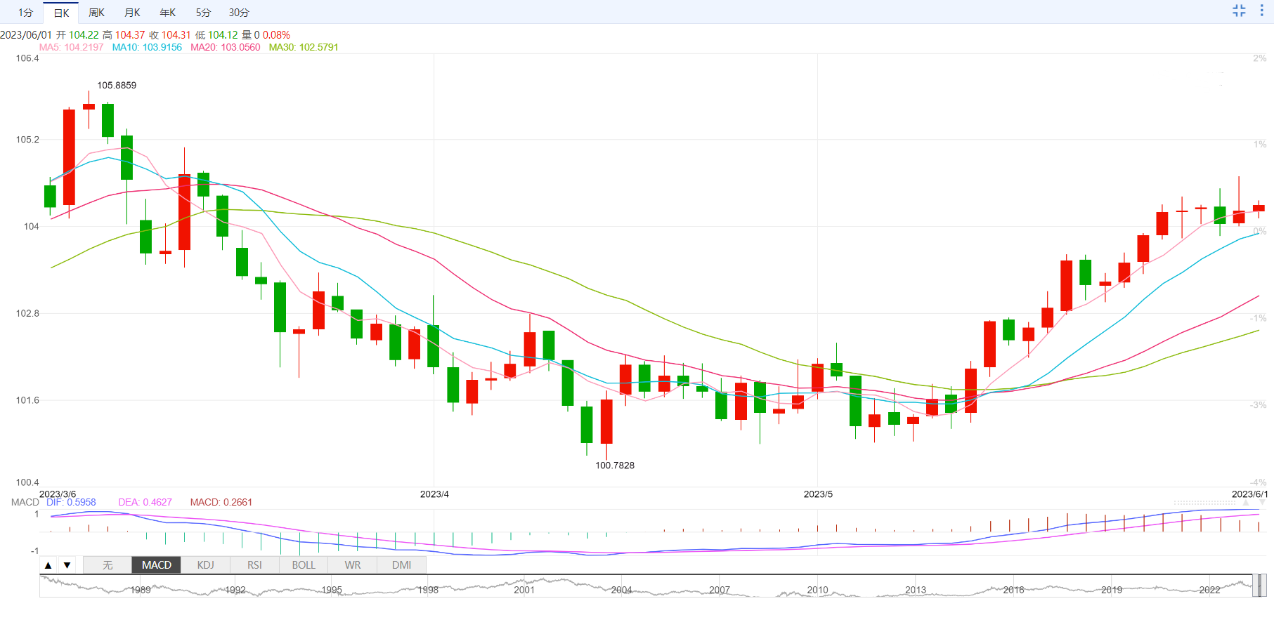 美元指数周四窄幅震荡,目前交投于104.21附近,投资者削减了对美国联邦储备理事会本月加息的押注,不过债务上限最后期限迫近给避险美元带来了支持。