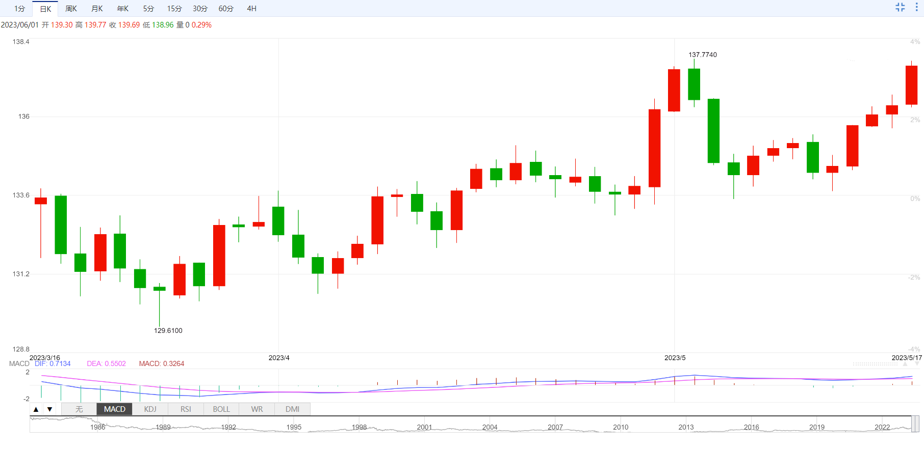美元/日元买盘加大,刷新日线高点139.50附近,四个交易日中首日上涨。在这期间,美元/日元自短线看涨旗形形态下沿反弹。也就是说,相对强度指标(14)自50下方上升,似乎支撑著美元/日元在旗形形态内最新展开反弹。然而,139.50附近的50-简单移动均线与MACD信号看跌一起对多头构成挑战。如果美元/日元能够突破139.50阻力,那麽139.80上述旗形形态上沿将成为阻力,因为若突破该水平将确认看涨形态,表明理论目标是146.50。