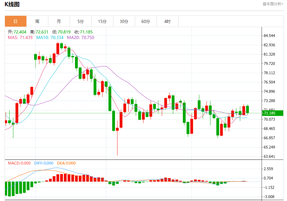 原油市场:截止北京时间20:24,美油下跌,现报71.194,跌幅1.59%。纽市盘前,原油价格面临突破71.55水平并接近日内看涨通道支撑线的负面压力,这使得我们在获得下一个趋势的更清晰信号之前保持观望,注意到持续下降并突破70.60将停止上午建议的积极情景,并推动价格转向下降,主要走向68.75区域,而突破71.55并再次保持在它上方将重新启动其下一个主要目标位于73.80的看涨趋势。