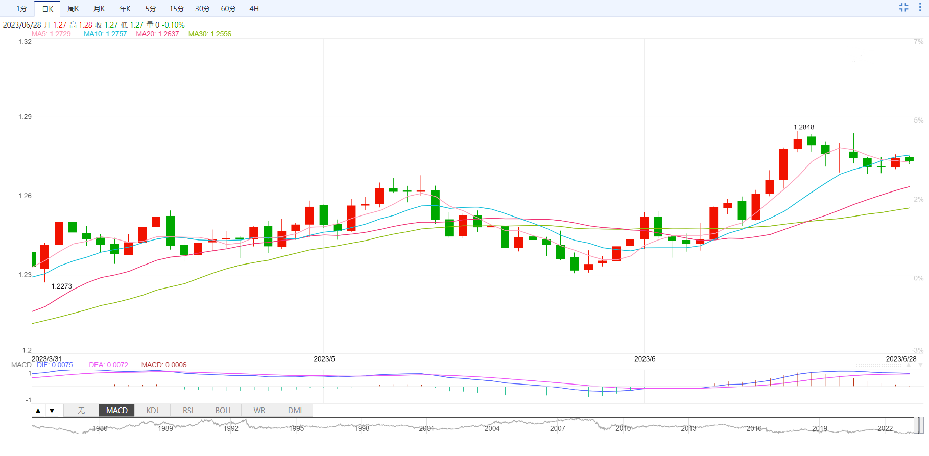 欧元/美元拉锯于1.0950附近。欧元/美元试图明确方向,因为投资者正在等待美联储主席杰罗姆-鲍威尔的讲话,以获得关于利率的进一步指导。欧元区方面,欧央行行长拉加德在欧洲央行中央银行论坛上发表鹰派讲话后,欧元在周二仍出现较大波动。欧洲央行拉加德表示,欧元区通货膨胀处在非常高的水平,央行需要使货币政策具有足够的限制性以抑制价格压力。工资上涨对通货膨胀的影响最近得到放大。