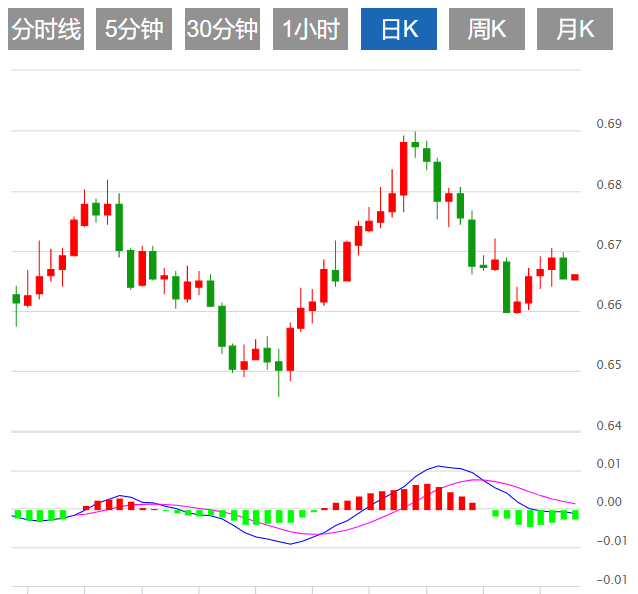 澳元/美元对在亚洲尾盘0.6640附近找到一些支撑。在美元指数(DXY)出现温和压力后,澳元资产感受到了一些购买兴趣。美元指数在创下四天新高103.40点后出现小幅抛售。澳大利亚5月商品及服务贸易帐录得117.91亿澳元,期值105亿澳元,前值111.58亿澳元。澳大利亚5月商品/服务出口月率上升4.0%,同时扭转之前下降5.0%的局面。澳洲5月商品/服务进口月率上升2%,4月该指标经季调录得2.0%。技术上,虽然最新澳洲数据吸引多头,市场普遍维持风险规避且前日澳元/美元遇阻一周看涨通道且MACD信号令空头维持期待。