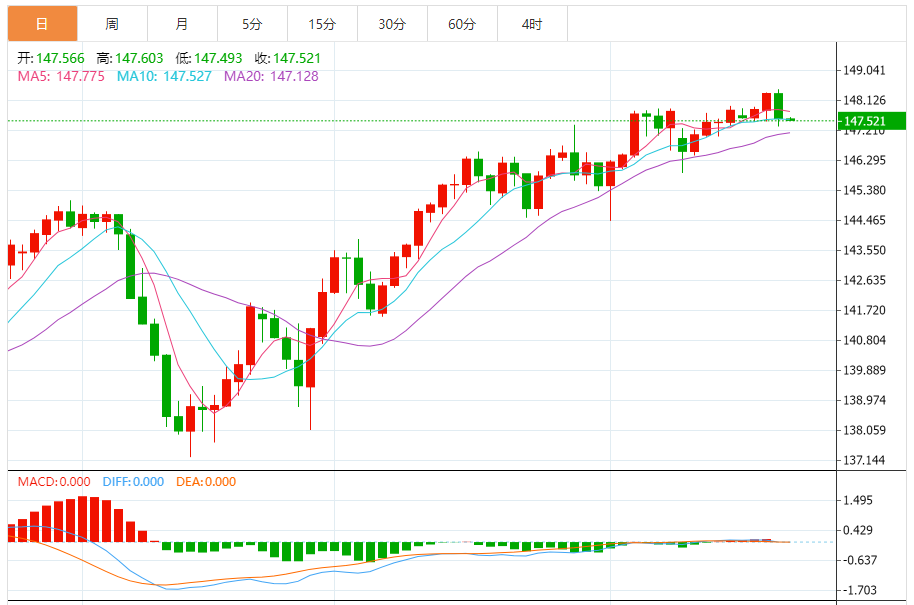 美元/日元在周四亚洲时段触及年初至今的新高(148.45附近)后回调,但由于缺乏进一步的上涨动力,目前价格保持在当日低点上方。美元/日元目前交投于148.25区域附近,当日跌幅不到0.10%,有望进一步上涨。