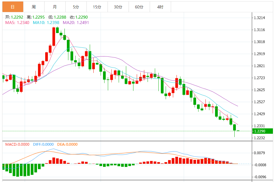 英国央行以5比4的投票结果决定维持利率不变,其中英国央行行长贝利投出了决定性的一票,英镑/美元大幅下跌,在触及日高1.2331后,目前交投于1.2295。