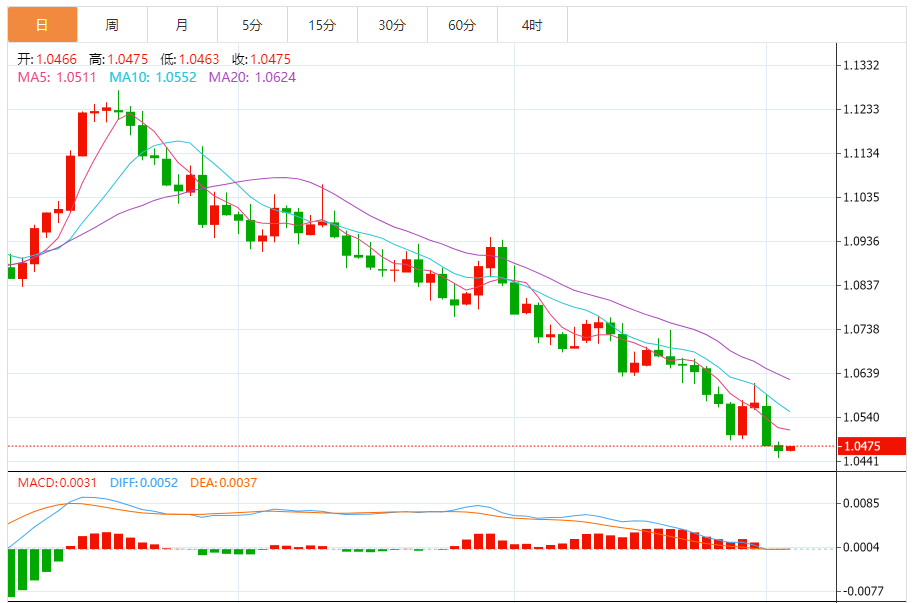 欧元:欧元/美元下跌,收报1.0466,跌幅0.10%。技术面上,汇价上行的初步阻力位于1.0490,进一步阻力位于1.0515,关键阻力位于1.0536;汇价下行的初步支撑位于1.0445,进一步支撑位于1.0423,更关键支撑位于1.0399。