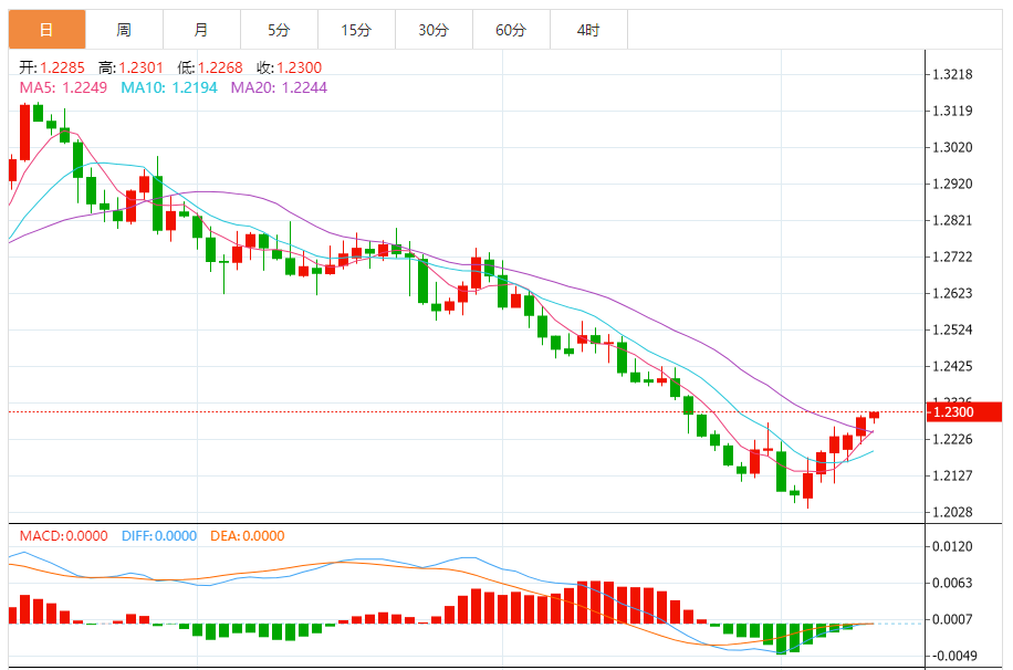 英镑:英镑/美元上涨,收报1.2285,涨幅0.40%。技术面上,汇价上行的初步阻力位于1.2306,进一步阻力位于1.2339,关键阻力位于1.2386;汇价下行的初步支撑位于1.2226,进一步支撑位于1.2178,更关键支撑位于1.2145。