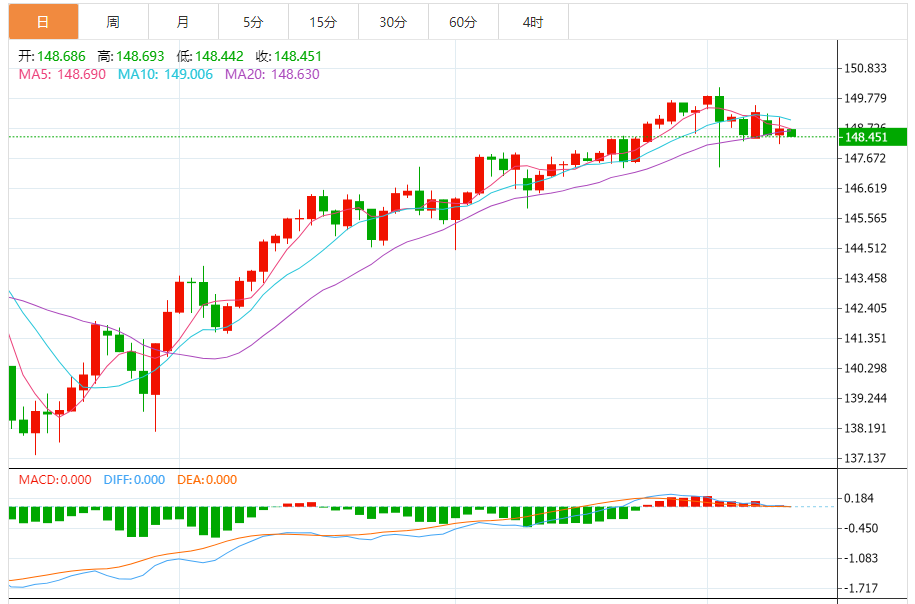 日元:美元/日元下跌,收报148.709,涨幅0.14%。技术面上,汇价上行的初步阻力位于149.142,进一步阻力位149.59,关键阻力位于150.082;汇价下行的初步支撑位于148.202,进一步支撑位于147.71,更关键支撑位于147.262。