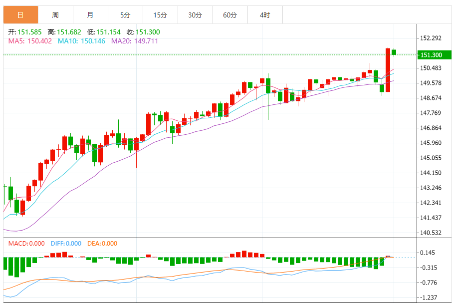 日元:美元/日元上涨,收报151.666,涨幅1.75%。技术面上,汇价上行的初步阻力位于152.592,进一步阻力位153.505,关键阻力位于155.296;汇价下行的初步支撑位于149.888,进一步支撑位于148.097,更关键支撑位于147.184。