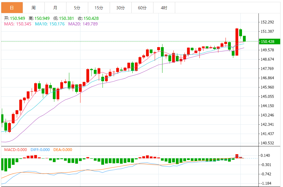 日元:美元/日元收低,收报150.950,跌幅0.47%。技术面上,汇价上行的初步阻力位于151.523,进一步阻力位152.106,关键阻力位于152.537;汇价下行的初步支撑位于150.509,进一步支撑位于150.078,更关键支撑位于149.495。