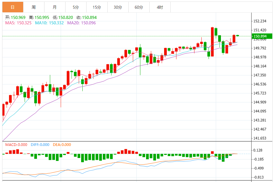 日元:美元/日元收高,收报150.993,涨幅0.44%。技术面上,汇价上行的初步阻力位于151.25,进一步阻力位151.541,关键阻力位于152.029;汇价下行的初步支撑位于150.471,进一步支撑位于149.983,更关键支撑位于149.692。