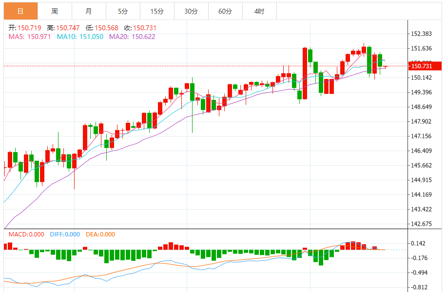 日元:美元/日元下跌,收报150.722,跌幅0.39%。技术面上,汇价上行的初步阻力位于151.31,进一步阻力位151.94,关键阻力位于152.448;汇价下行的初步支撑位于150.172,进一步支撑位于149.664,更关键支撑位于149.034。