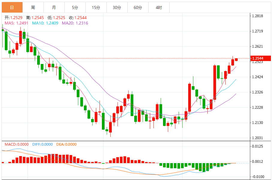 英镑:英镑/美元上涨,收报1.2537,涨幅0.27%。技术面上,汇价上行的初步阻力位于1.2565,进一步阻力位于1.2592,关键阻力位于1.2625;汇价下行的初步支撑位于1.2505,进一步支撑位于1.2472,更关键支撑位于1.2445。
