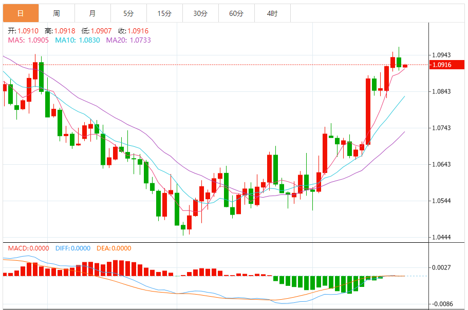 欧元:欧元/美元下跌,收报1.0910,跌幅0.27%。技术面上,汇价上行的初步阻力位于1.0951,进一步阻力位于1.0992,关键阻力位于1.1017;汇价下行的初步支撑位于1.0885,进一步支撑位于1.0860,更关键支撑位于1.0819。