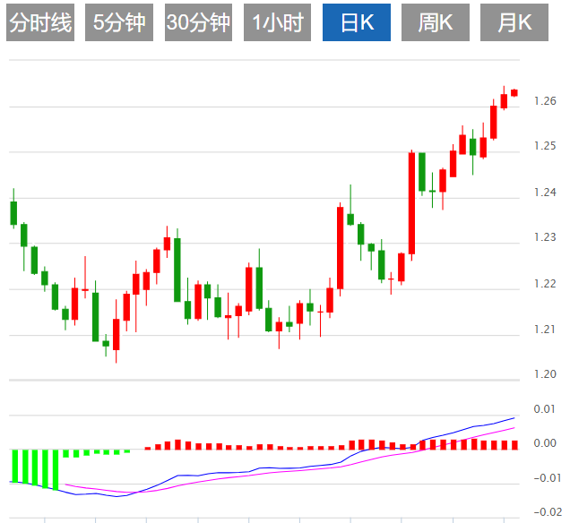 周二亚盘,美元指数走低,欧元/美元交投于 1.0960附近,当日温和上涨,逼近 8 月以来的高点。市场认为联准会升息週期已经结束,美元继续走低。美国人口普查局週一公佈的数据显示,美国10月新屋销售月率下降5.6%,至67.9万户,低于期值72.5万户。此外,美国 11 月达拉斯联邦储备银行制造业指数从前值-19.2 降至-19.9。